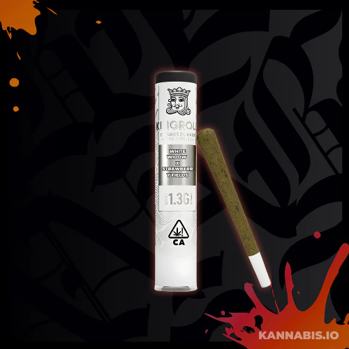 Kingroll 1.3-Gram Infused Pre-roll in White Widow x Strawberry Fields. Handcrafted with complementary strains and oil pairings carefully chosen by cultivation and extraction teams for a flavorful experience. This hybrid blend delivers uplifting energy with sweet berry undertones.