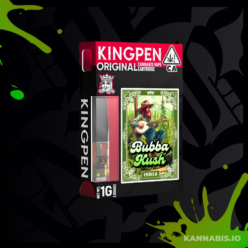 Kingpen Originals 1-Gram Vape Cartridge in Bubba Kush. Award-winning Kingpen oil crafted with proprietary extraction and distillation methods that exceed industry standards. This classic indica delivers deep relaxation with earthy, coffee, and chocolate flavors. Perfect for unwinding.