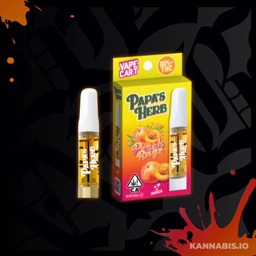 Papa's Herb Peach Ringz 510 Cartridge. Budget-friendly 1-gram distillate cartridge delivering sweet peachy candy flavors with relaxing indica effects. High potency at an affordable price. Compatible with any 510 thread battery.