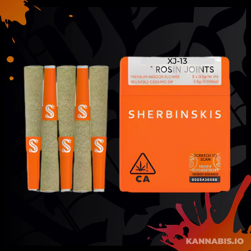 Sherbinskis XJ-13 Infused Mini Rosin Pre-Roll Pack. Five premium mini joints infused with solventless rosin for a clean, potent experience. XJ-13 is a legendary hybrid known for its uplifting, clear-headed effects and piney citrus flavor. 53.01% THC.