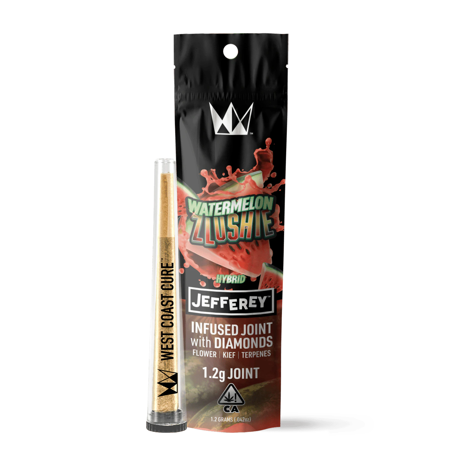 The Watermelon Zlushie Jefferey Single is a 1.2-gram powerhouse of a pre-roll, expertly crafted for those who crave quality. Rolled with WCC's top-tier whole nug flower, this joint is supercharged with visible THCa diamonds, high-end kief, and subtly enhanced with all-natural terpenes. No trim, shake, or old flower hereβjust green, frosty goodness ground in-house in small batches for optimal freshness.