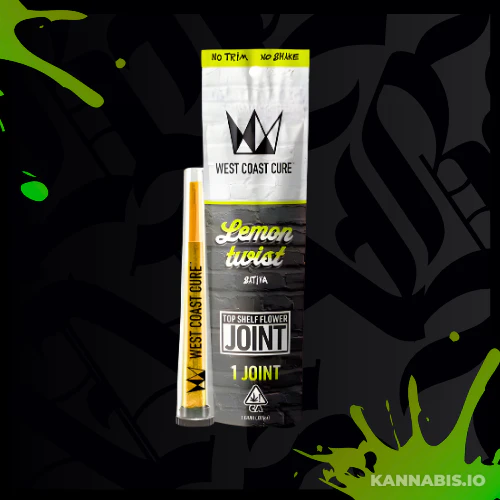 West Coast Cure Lemon Twist CUREjoint. Premium 1-gram pre-roll bursting with bright, citrusy lemon flavors. This sativa-dominant strain delivers an energizing, uplifting high perfect for daytime use. Clean burn with smooth, refreshing smoke.